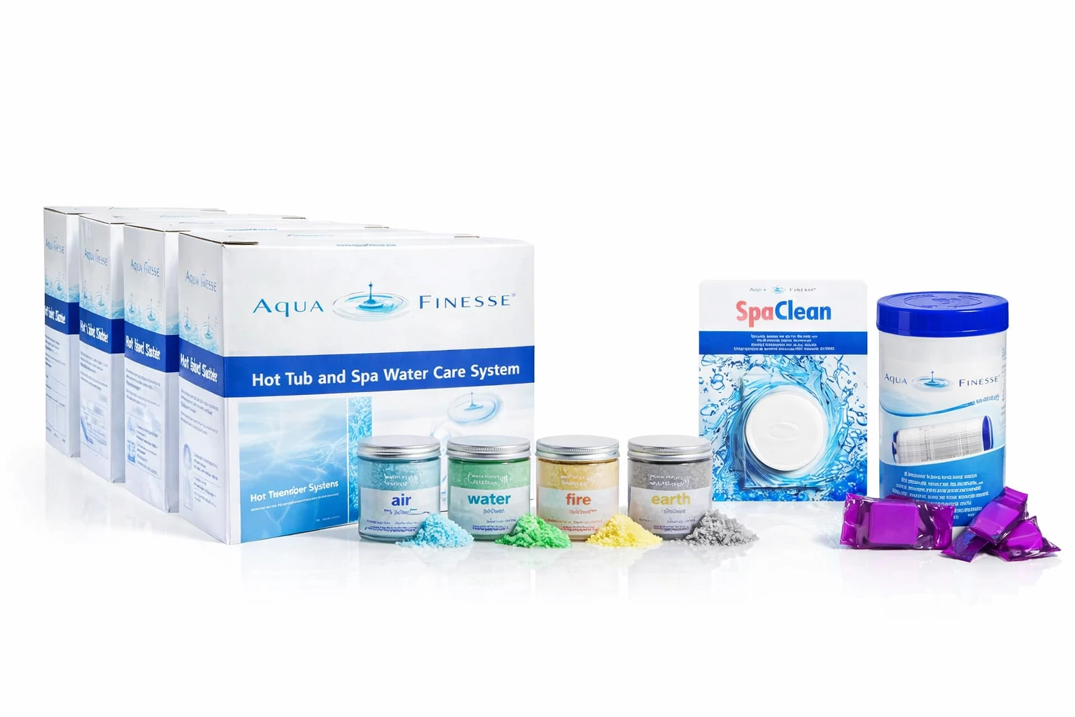 Az AquaFinesse™ egy szabadalmi oltalom alatt álló medencék tisztítására szolgáló víztisztító adalékanyag, amely legkényelmesebb módja a fürdővíz tisztán tartásának. Nincsenek a szokásos kemikáliák, csupán a kristálytiszta vizet ígérő környezetbarát, modern adalék. Az AquaFinesse™ egy pofonegyszerűen használható termék, amelynek használata csupán heti egyszeri alkalommal néhány perces művelet. Az AquaFinesse™ segít abban, hogy időt takarítson meg, és ne költse pénzét feleslegesen a masszázsmedence vegyszerek különböző formáinak folyamatos tesztelésével. Meggyőződésünk, hogy az AquaFinesse™ az egyetlen igazán egyszerű megoldás a jakuzzik vízkezelésében. A szokásos napi szintű odafigyelés helyett elegendő hetente egy alkalommal foglalkoznia a medencevíz karbantartásával, és folyamatosan kellemes, kristálytiszta vízben fürdőzhet. Az AquaFinesse™ használata a medencevíz fertőtlenítő szer igényét jelentősen csökkenti, így elegendő csupán a lassan oldódó fertőtlenítő (triklór) tabletta használata.