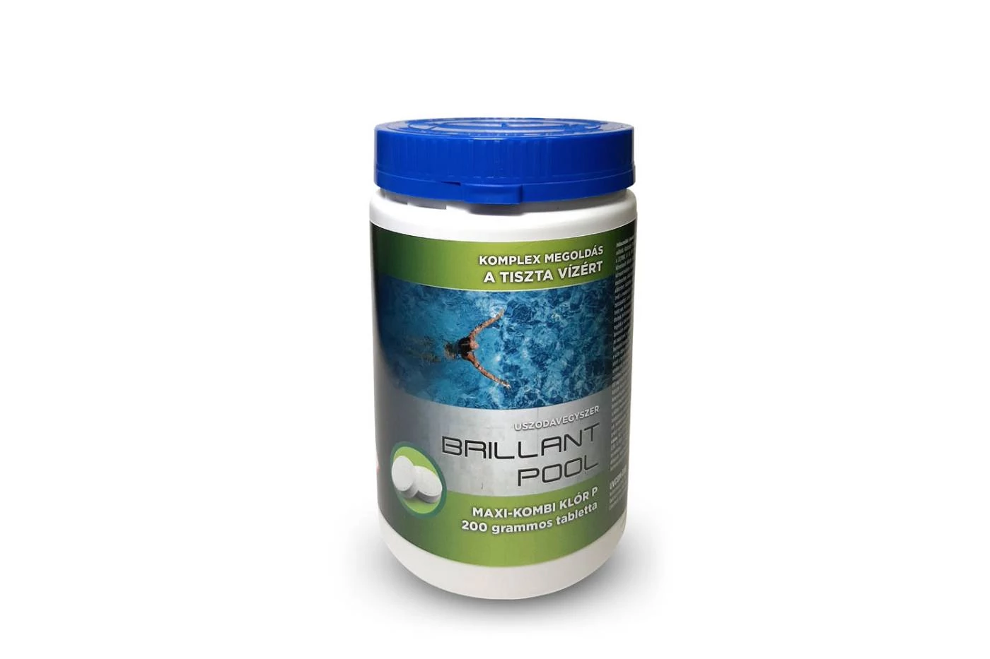 90% klórtartalommal, algaölő és pelyhesítő adalékkal, triklórizocianursav hatóanyaggal, lassan oldódó 200 g-os tabletta. Kombinált fertőtlenítő -algaölő-pelyhesítőszer nyilvános és magánmedencékhez.