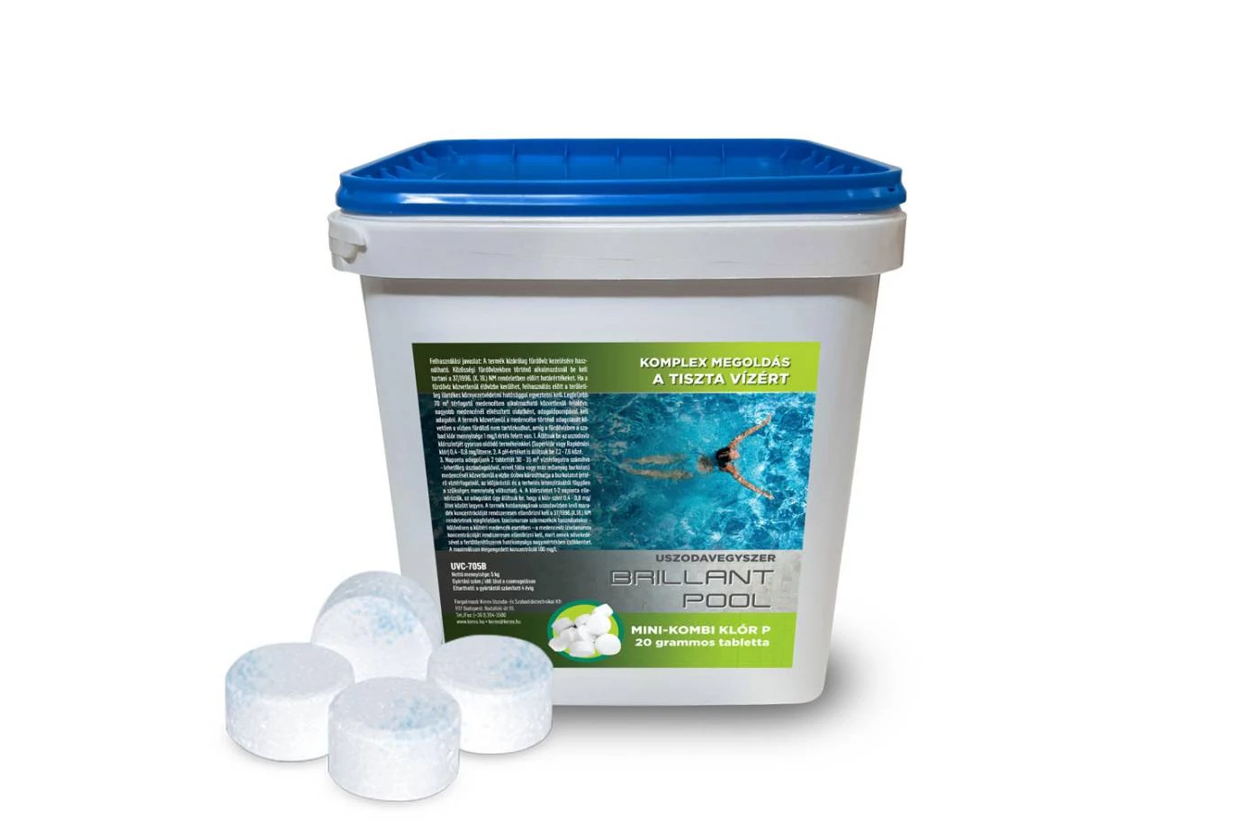 Adagolás: Lassan oldódó fertőtlenítőszer tabletta. A medencevíz klórszintjének beállítása után, a klórszint folyamatos szinten tartására szolgál. Egy tabletta 2-3m3 víz klórtartalmát képes szinten tartani. Elsősorban kisebb méretű mobil medencék vizének fertőtlenítéshez ajánljuk. A tabletták kb. 4-7 nap alatt oldódnak fel. Ha a tabletta 3/4-e elolvadt, célszerű újat behelyezni. Úszó adagolóban kell adagolni. A medence felületén maródást színfakulást okozhat, ezért kerülni kell a tabletta közvetlen kontaktusát a medence felületével. A klór mellett algagátló és pelyhesítőszer adalékot is tartalmaz, ezért nem szükséges külön algagátló és pelyhesítőszer adagolást végezni. A medencevíz klórtartalma 0,4-0,8mg/l között legyen. Fontos a megfelelő pH érték, az ideális pH tartomány 7,2-7,6.